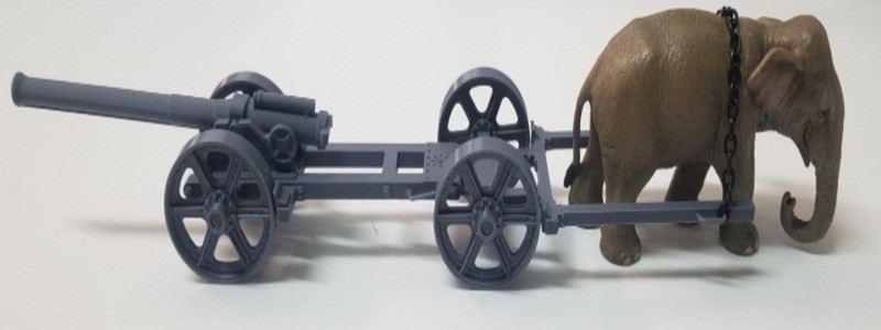 4.7 Naval Gun W/Limber Pulled by One Elephant, Spoke wheels