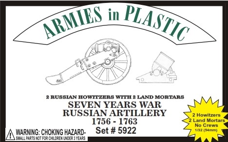Title: Seven Years War - Russian Artillery 1756 - 1763 - 2 Russian Howitzers with 2 Land Mortars